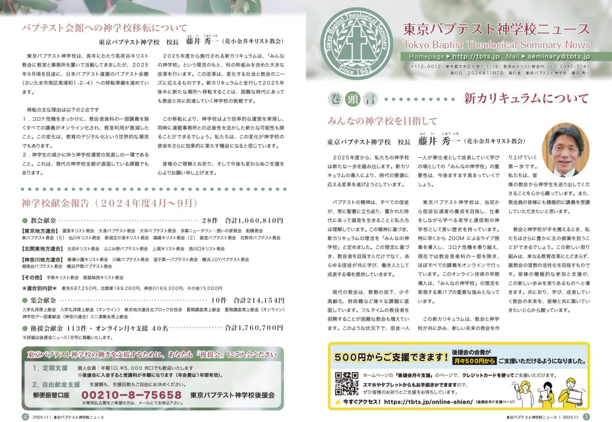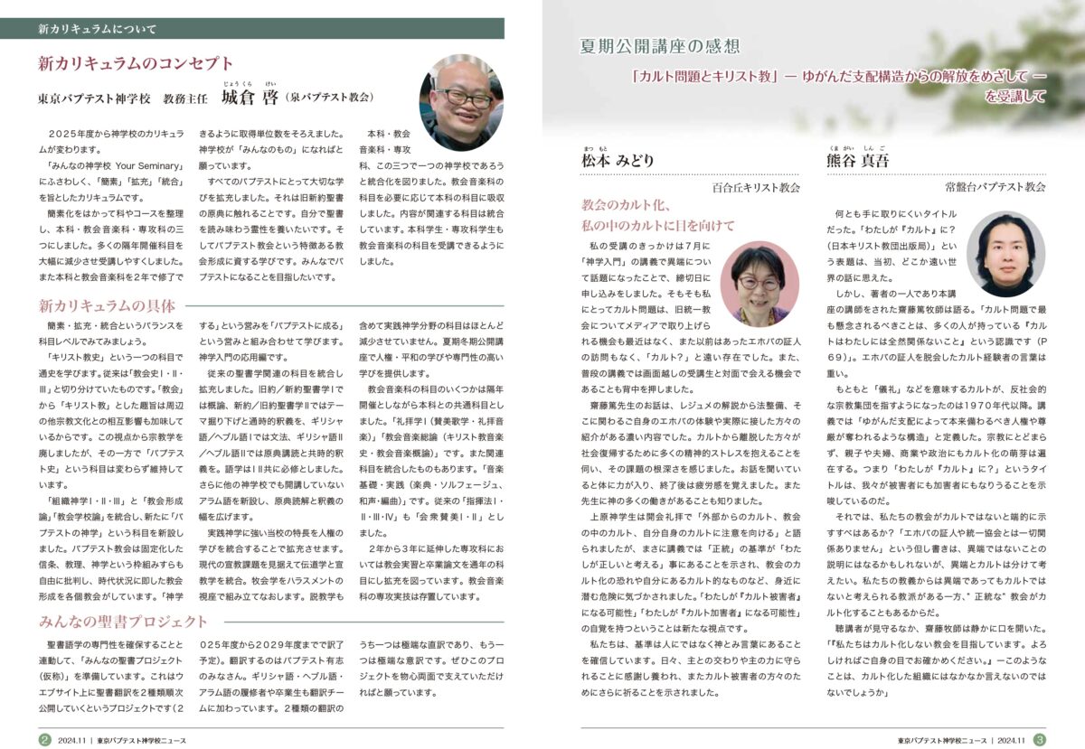 HOME 記事 ニュースレター 神学校ニュース 2024年11月号 神学校ニュース 2024年11月号 2024.11.11ニュースレター <資料ダウンロード> 神学校ニュース11月号(PDF) ニュースレター