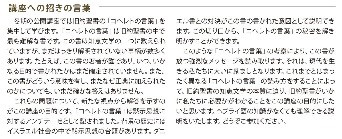 2025年度「冬期公開講座」お申込み